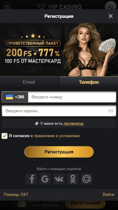 «VIP Casino UA» — «77 FS за реєстрацію»