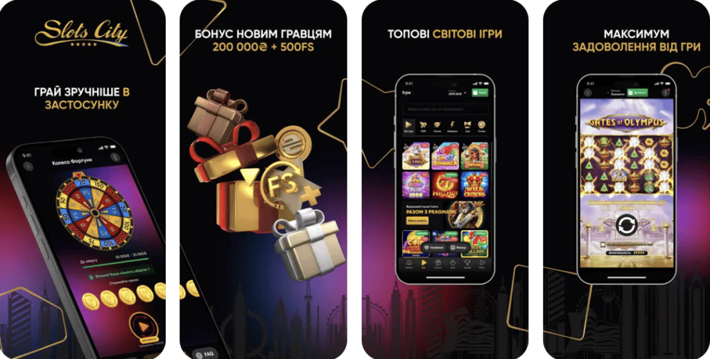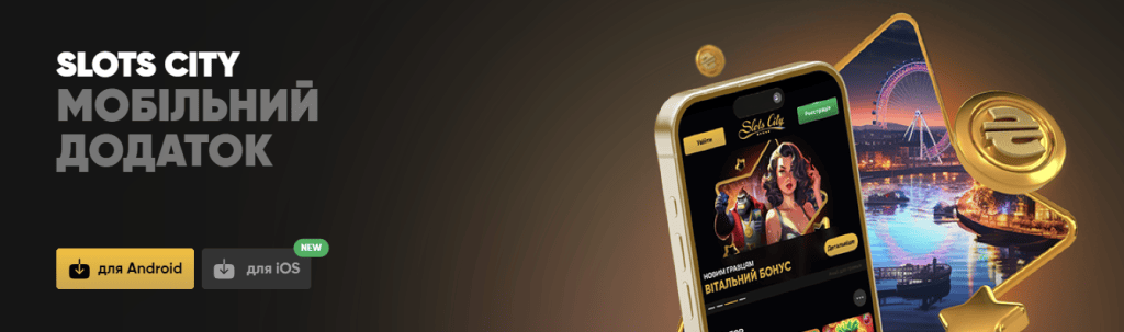 SlotCity — це зручний мобільний застосунок який шанувальники можуть скачати на Андроід і Айфон. Завдяки інтуїтивному інтерфейсу, ексклюзивним бонусам та швидкому доступу до улюблених ігор, ви зможете насолоджуватися грою будь-де та будь-коли. Застосунок забезпечує безпеку, синхронізацію балансу і персональних даних.